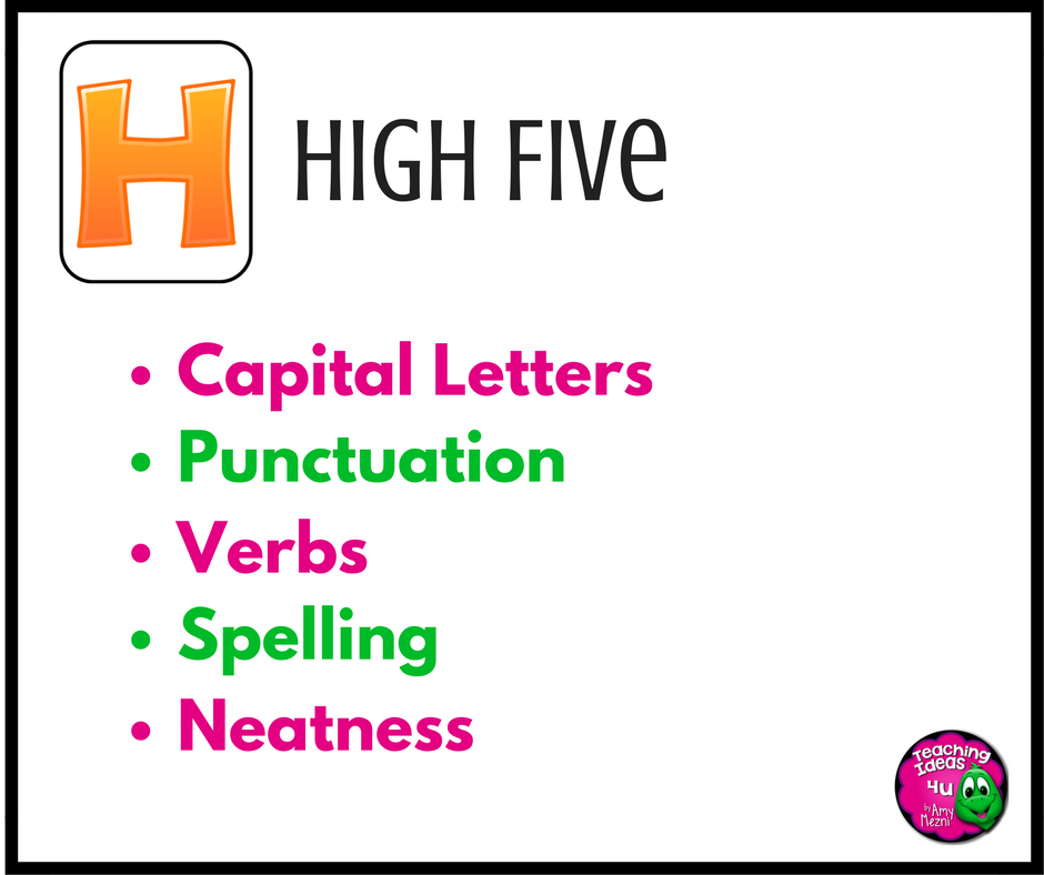 The H stands for "High Five" - my way of saying editing. Five fingers, five edits. In Florida, spelling and grammar errors count for almost nothing on the state exam. Does that mean they aren't important? No, but in all honestly if the student runs out of time for editing, it is okay. It is more important that they have solid evidence and analysis. During these few minutes, students should edit:
